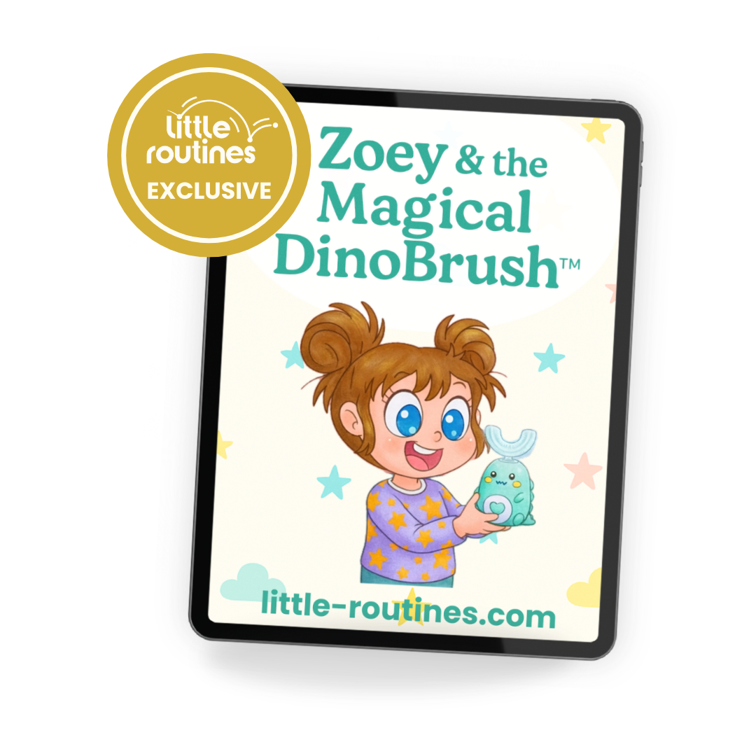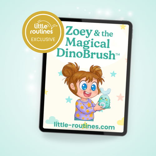 Every DinoBrush™ comes with Zoey & the Magical DinoBrush (value €9,99) — an exclusive, lovingly illustrated storybook designed to make brushing part of your child’s bedtime magic.