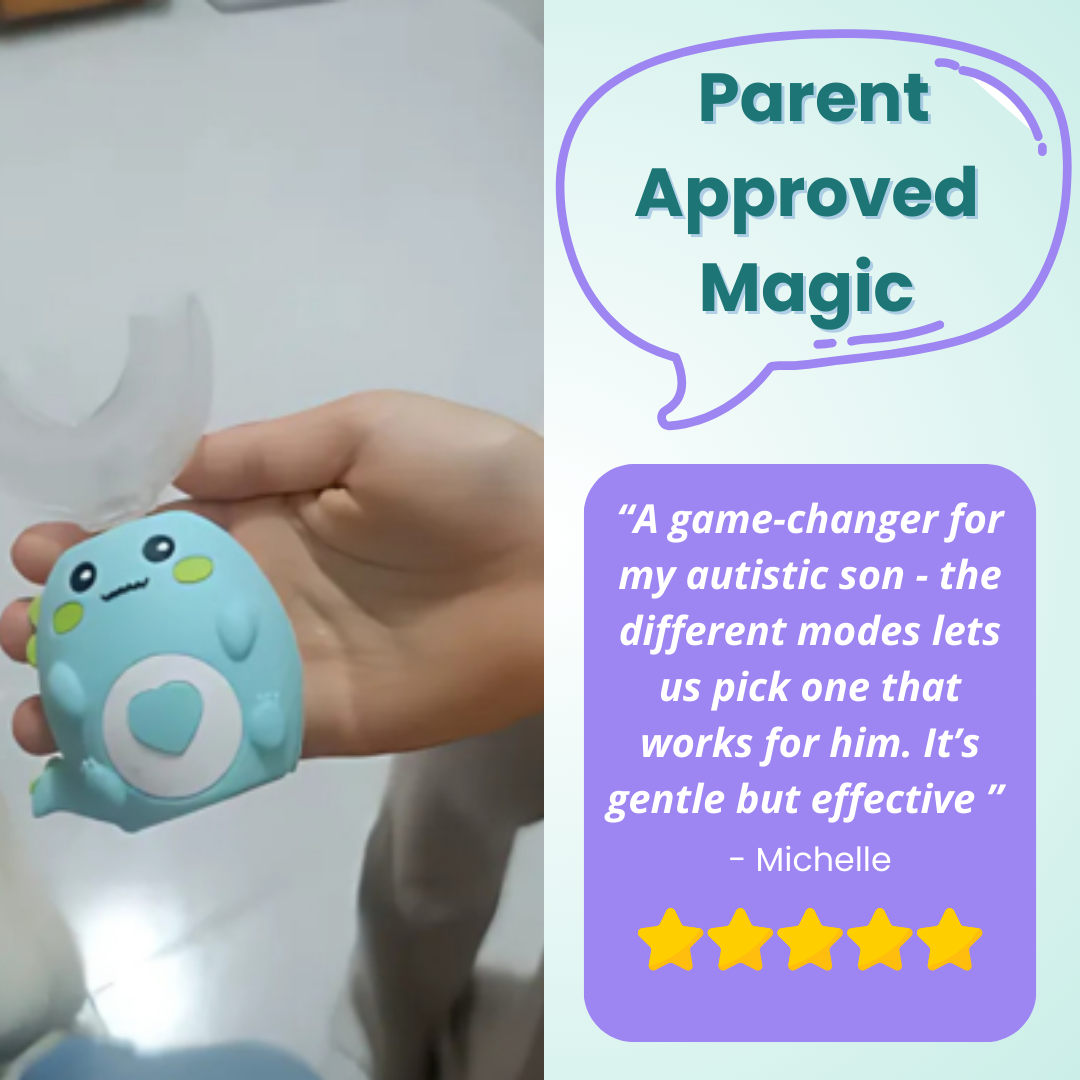 Although electric toothbrushes are a step up from manual ones, they still rely on correct use. Loud buzzing, hard plastic, and adult-sized expectations don’t help. DinoBrush™ was made for toddlers: soft, quiet, and easy to use all on their own.